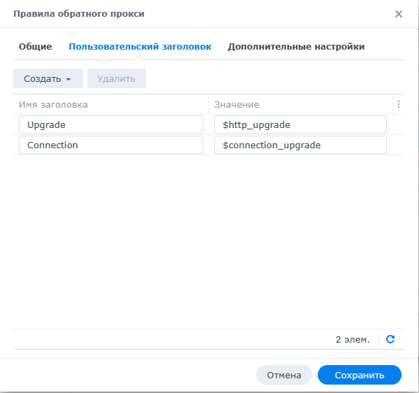 Шаг 1. Создать правило Reverse Proxy в Synology DSM