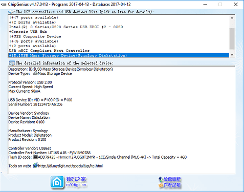 Для загрузки нашей DS мы использовали первую попавшуюся флешку на контроллере Phison (он хорошо прошивается и ПО доступно), заменили ему VID/PID на значение F400, залили наш дамп с неисправным разделом Synology_2 и установили её в передний usb 3.0 разьем.