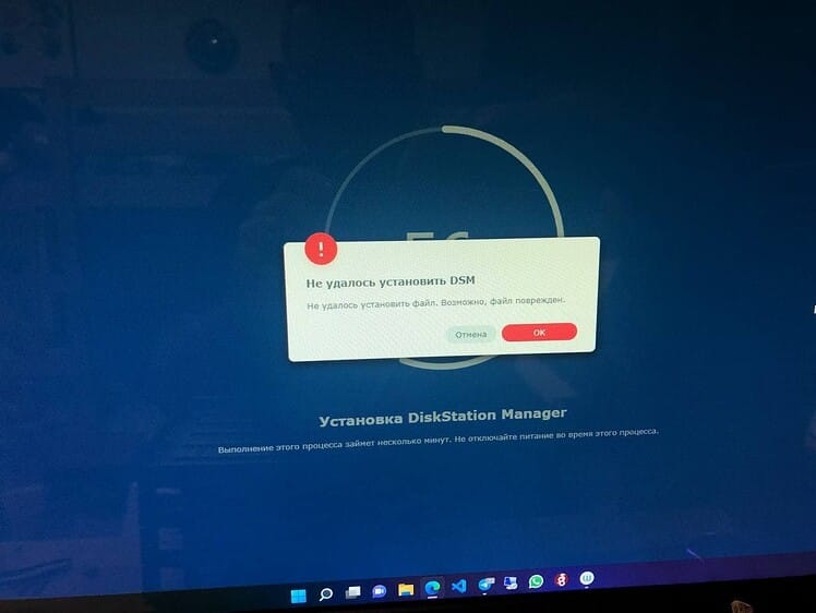 Она делала вид что исправна, просила установить DSM, форматировала диски но в определенный момент падала в ошибку “не удалось установить DSM” примерно на 56-60%.